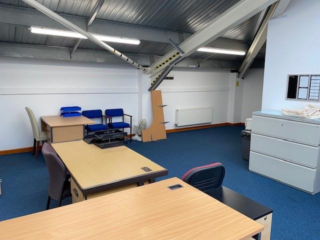 An end of terrace unit of steel frame construction having brick elevations, full height goods entrance door and offering a good mixture of storage/production space and offices. Radiator heating is fitted throughout the offices and LED lighting is fitted. The accommodation briefly comprises:- GROUND FLOOR 93.46 sq m (1,006 sq ft) Comprising a hall, reception office, kitchenette off, wc and warehouse/production space. FIRST FLOOR Office 41.20 sq m Being fully carpeted with florescent strip lighting, painted and plastered walls and central heating radiator. Office 21.75 sq m Fitted as above. Total Floor area: Ground Floor 93.46 sq m (1006 sq ft) First Floor 62.95 sq m (678 sq ft) Total 156.41 sq m (1684 sq ft)